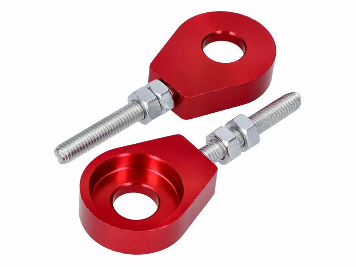 Anodized Aluminum Chain Tensions Set of 2 Pieces suitable for moped / Mokick rear Axle with 12mm diameter. The Set Comes With M6 Lock Nuts., Overall Length: 75mm, Hole Diameter: 12.5mm, Thread: M6, Thread Length: 40mm