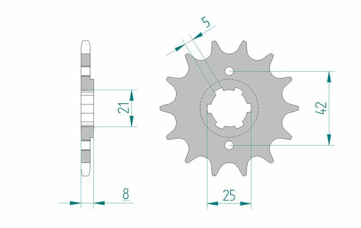 AFAM Front Processor's produced in a high resistance Steel Alloy and Machined With Precision. The Quality of These Front Sprocks Made AFAM A World Leader for Motorcycle Transmission Parts. Standard Steel Front-Procquet of Range Manufacturing and QualityContributes To Transmission Kit Durability Chain_pitch: 520.0 Front_Proket_type: 21502.0 Front_prove_version: Standard Material: Steel