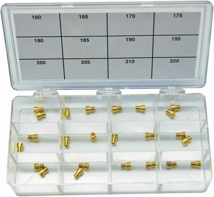 Kit includes two Jets of the Following Sizes: 160, 165, 170, 175, 180, 185, 190, 195, 200, 205, 210 and 220, Jets are flow-calibrated for extremely accurate Fuel Flow Rate, High-precision Brass carburetor carborn
