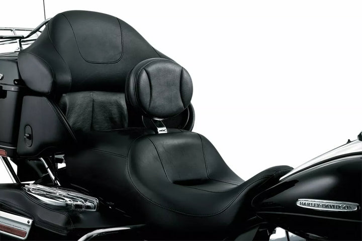 Contoured, Upholstered Backrest, Back Has A Removable Zip Pocket/Pouch, Height Can Be Adjusted or Backrest Removed Without Tools, Installs Using Existing Fender Bolts