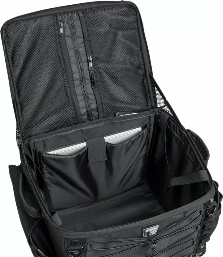 Make the Road Feel Like Home With The Ultra-Versatile Vagabond Seat and Rack Bag, EU Measurements 45.72 cm Width x 30.48 cm Deptth x 39.37 cm Height., Utilitarian by nature, with enough Internal Storage Capacity to wear Require Capacity 46.21 L, Two Separate Packing Compartments Offer Easy Access to Cargo while on the road without disrupting the contents of the bag, Internal Zippered Mesh Pockets Keep Smaller Items Organized, Made from Uv-rat Even When Empty, Padded Media Storage Pocket for Up To 13 "Laptops or Tablets, Quick-Mount Sissy Bar Strap design, plus Full Mounting Strap Kit for a Variety of Easy, Secure Mounting Options, Two Bottle Pockets and Two External Bock Pockets For Small Stash Pocket Pocket For Small Stash Pocket For Small. Bedrolls, or Other Items, Integrated Molle Modular Attachment Options, Removable Shoulder Strap Plus Low-Profile Carrying Handles For Easy Transport Off The Bike, Multiple Heavy-Duty D-Ring For Secure Mounting, Includes Tethered Rain Cover, 18 " CAPACITY OF 2,820 CUBIC INCHES OR 46 LITER