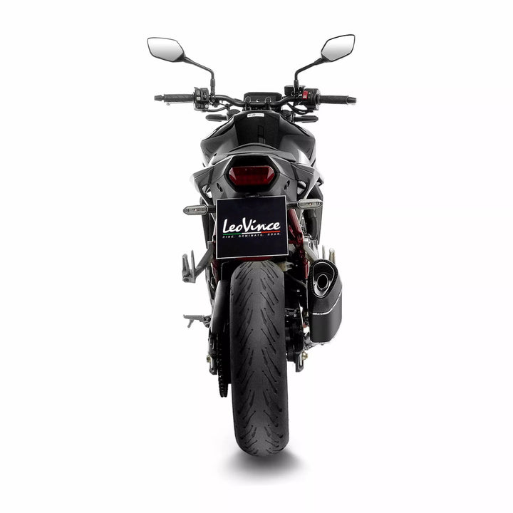 LV-14 R Black Edition Slip-On Muffler, Leovince LV-14 R Black Edition Represents The Constant Innovation in Technology and Design That Has Distinguish Us For 70 Years., Innovative Shapes and Cutting-Edge Materials Come Together to Create Aerody Pleasure of your bike., The LV-14 R Black Edition Silencer Contains A Special Packing Materials with High Thermal Resistance Which is Hand-Assembled to a Straight-Through Internal Muffler Core Equipped With A DB-Killer. Furthermore, All Tig Weldings are Handcrafted by Specialized Operators, Because Resistance and Reliability Are The Key To Pure and Long-Lasting Fun.