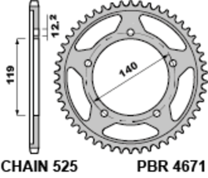 Chain Pitch: 525.0 Material: Steel rear teeth: 44.0 REAR TYPE: 4671 REAR Version: Standard
