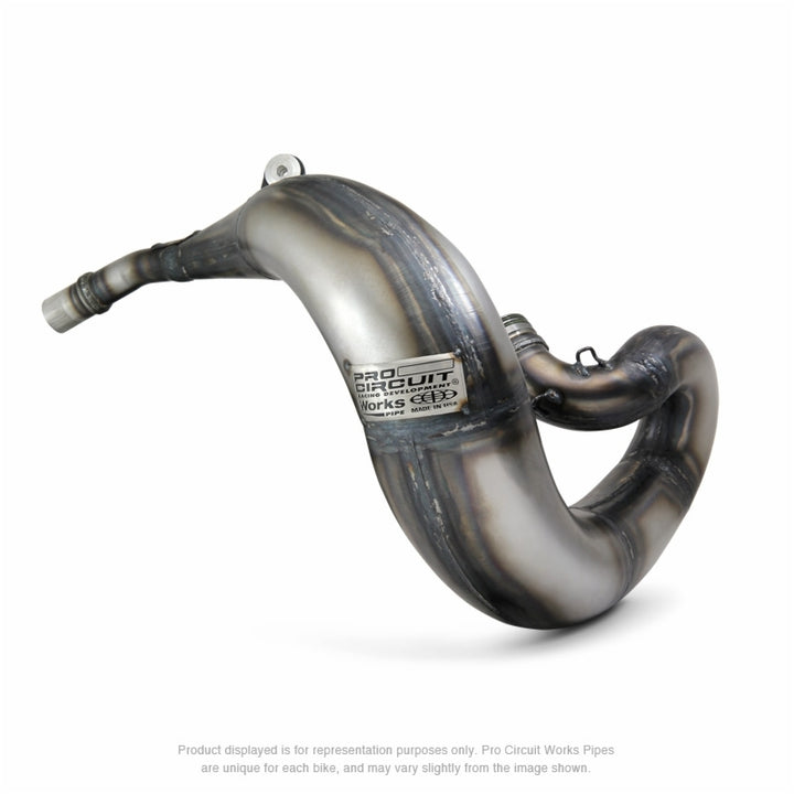 Pipe Description: The Original Pro Circuit Works Pipe Offers Unparalled Performance and Power for Every Two-Stroke Application. INCREASED HORSEPOWER AND TORQUE GAINS Will Quickly Be Noticed Across The Entire RPM Range. The Unplated, Oiled Metal Finish Requires Some Maintenance, But Really Gives Your Bike That "Works Look". Features Include: Stamped AKDQ High Quality Carbon Steel Construction Hand Welded and Pounded Seamsreinforced Mounting Brackets and Stingermade in the USA Homologation: Track Use Only