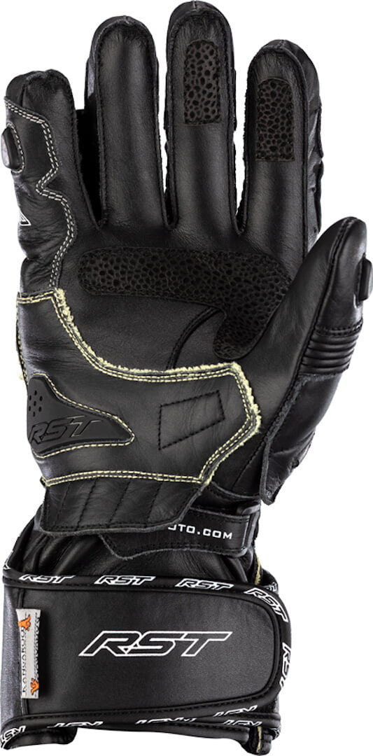 The glove is made with whole grain's cowhide and kangaroos and has a CE Level 2 Carbon Knuckle Protector for shock protection. DuPont ™ Kevlar® fiber on palm and substrate, together with double layer kangaroos and an RST palm control protects the palm in the event of a high-speed sliding, while the double wrist and cuff closure provides a safe fit. DuPont ™ Kevlar® feed in the rest of the glove prevents demolition and elastic joined fingers to prevent "finger roll" without affecting reach or flexibility when switching.
