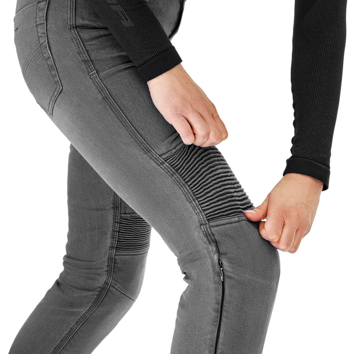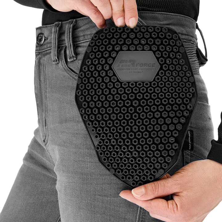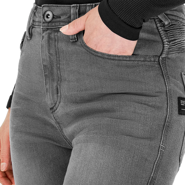 The pants are equipped with Airforce-CHAIR (Level 1) and height-adjustable GFlexx-Knäsk protection (Level 2) Like sitting in Outer pockets - Which makes it easy to adjust them without removing the jeans. Lady Fit pass form Is tailor made for female anatomy and combines stylish silhouette with freedom of movement. Stretch panels and harmony weeks over the knees and during the waistband, flexibility further increases.