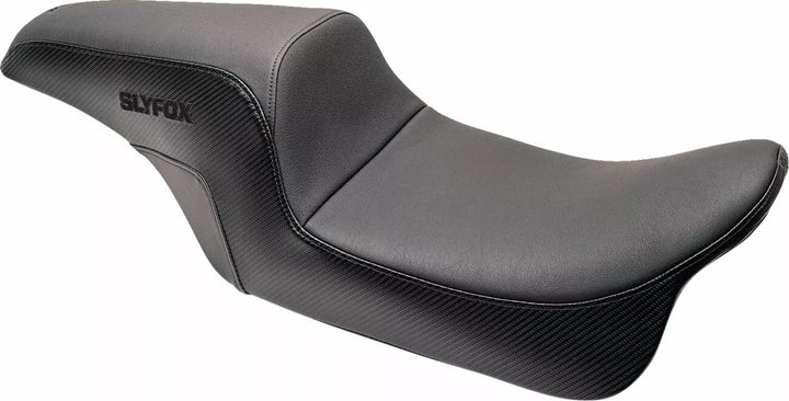 Automotive Grade Vinyl Seating Area, Slipstop On Lumbar, and Carbon Fiber on the Sides, Tall Driver Support With Unique Styling, Contoured Seating Area for Maximum Comfort, Narrow Up Front for Better Leg Clearance, Seat Flexible Flexible Urethaf Perfect Fit, Fully Carpeted Bottom, and Rubber Bumpers to Protect Paint, All Hardware Fastened to Seat and Instructions Included, Made in the USA
