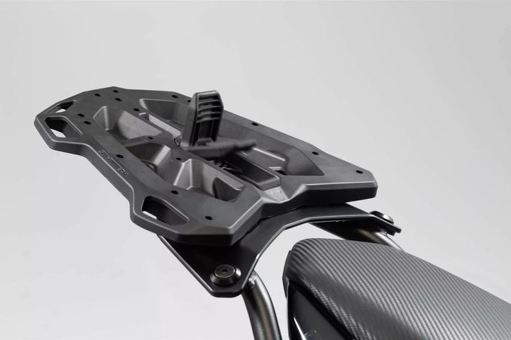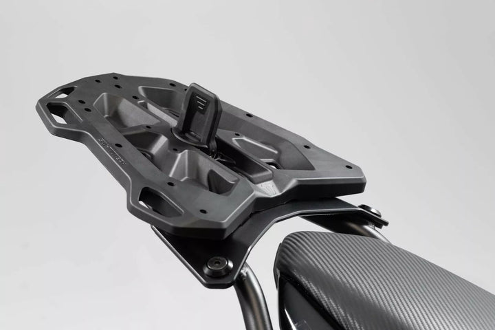 With One Simple Twist-And-Clamp Motion, The Adapter Plate Can Be Connected to Any Street-Rack. No Tools Required!, The Adapter Plate Is Simply Slid onto The Rack and Securely Locked The Rotating Cam Latch., After Your Ride, The Adapter Plate Can Be Removed in Seconds And Just the Rack Stays on the Motorcycle. Lashing Eyes.