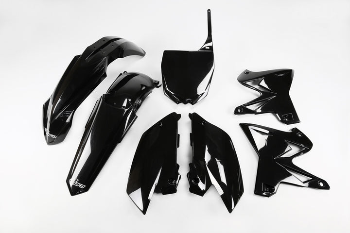 НЛО пластмасите са известни със своето качество и тяхната устойчивост на използване на офроуд. Те са проектирани като OEM Plasticics и са лесни за монтиране. Те се използват от днешните най -добри отбори и форми на MXGP световни шампиони. OEM Typekit съдържа: Front FenderRear Fenderradiator CoveSide Panels Front Plate, изработен от UV, Choc и Torsion устойчив инжектиран пластмасов цвят: черен