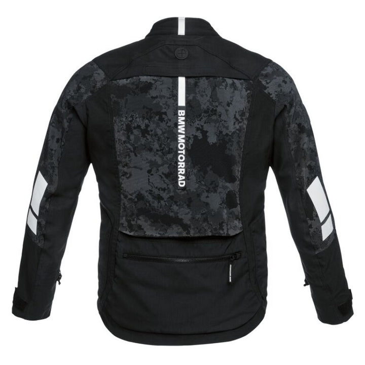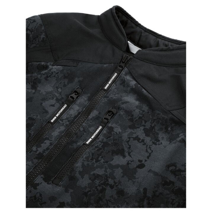 Якето е направено в едно Много траен и въздушен -безпроблемен полиамиден материал която осигурява оптимална вентилация и висока устойчивост на износване. Той е оборудван с BMW NP3 защита при рамене, лакти и дълга защита на гърба, който осигурява сигурност според класа за защита АА (EN 17092).