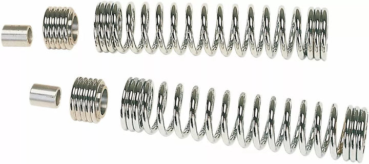 Най-бързият и лесен начин за понижаване на предните вилици с 1-1/2 ", се предлага с два хромирани пружини, пролетни дистанционери и втулки, направени в САЩ, изисква инструмент за разглобяване на вилица Springer.
