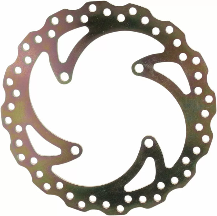 Супер трик изглеждащ контурен спирачен ротор профил, обработена с топлина неръждаема стомана, дизайнът на ротора намалява нефондовото тегло, изработен от немска мелница, обработена с топлина стомана, без отвори за отдушник в зоната за почистване на подложката за подобряване на използването на подложката и диска