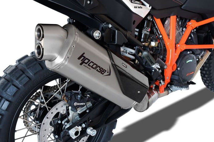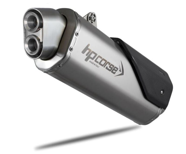 Чистотата на дизайна, 4-Track R Whith DBK е посветена на Maxi Enduro, Sport Touring/Adventure and Crossover of Last Generation, новият 4-пистов R Distcharger обича тръпката на големите пространства и пътищата, които надхвърлят хоризонта. Проектиран в центъра за научноизследователска и развойна дейност на Болоня, новото същество на HP Corse е родено силно, способна да издържа на най -взискателните ситуации и до многото яздени да придружава мотоциклетистите по пътищата и пътеките, планинските стъпала, пустините по целия свят. Тестван за повече от година на пейката и по най -взискателните маршрути, новият отработеник на HP Corrse гарантира религиозността и подобрената ефективност от всички оригинални заглушители, които заместват по -специално начинът на ниския и средния режим. HP Corse 4-Track R е лек, има осмоъгълно дъно във формата, има хидроформен чучур и заглушително тяло с лазерно гравирано лого. Предлага се в три различни материала: титан, сатенена стомана и керамичен черен неръждаем.