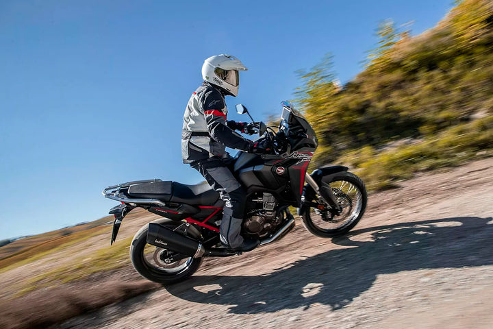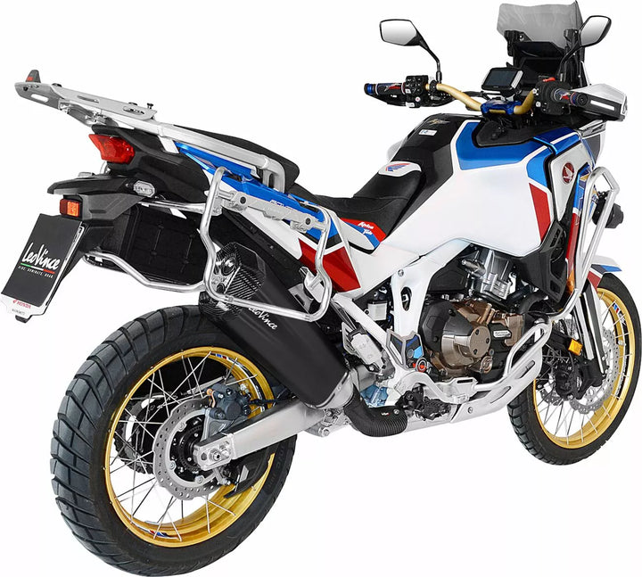 Тяло, изработено от титан или неръждаема стомана със сурово или матово черно покритие, заглушител с двоен поток, капачка на въглеродни влакна, лазерно-избито лого
