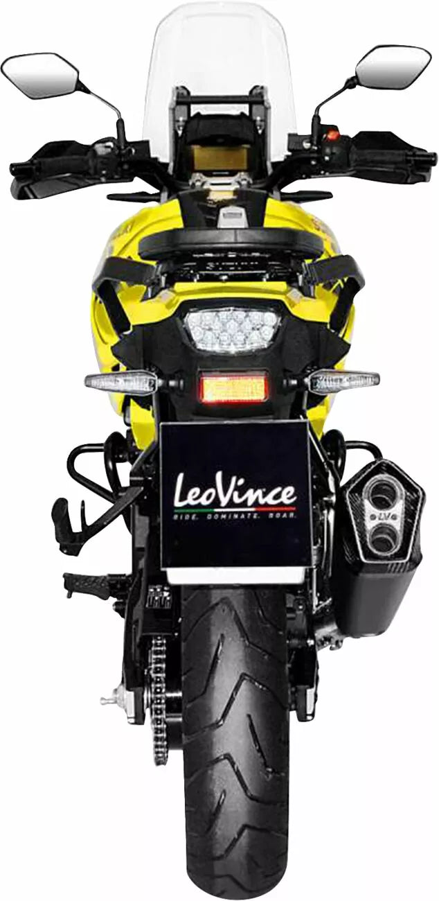 Тяло, изработено от титан или неръждаема стомана със сурово или матово черно покритие, заглушител с двоен поток, капачка на въглеродни влакна, лазерно-избито лого