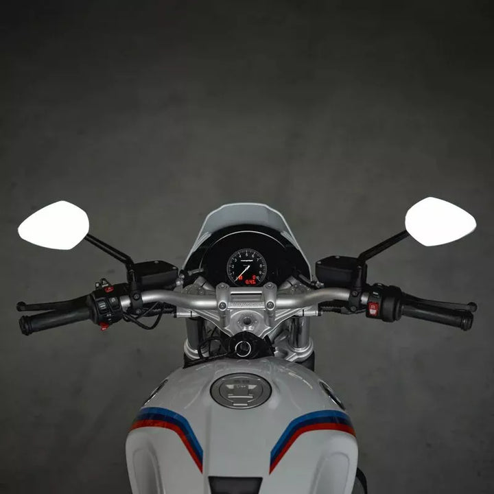 Огледалото за добавяне може лесно да се монтира към всяка огледална резба на M10 на лентите с дръжката. В зависимост от предпочитанието или вида на превозното средство, има две дължини на ръката, от които да избирате, които могат да бъдат перфектно прикрепени към кормилото. За някои модели - като мотоциклети Harley -Davidson ™ - съвпадащ комплект Mo.View винтове също се предлага отделно (част: 06410255), нашата серия Mo.view Mo.View е уникална в света. Специалната характеристика на нашите огледала е патентованата огледална повърхност, която се работи директно от метала на тялото. Самият алуминий е огледалата. Изплушната повърхност на огледалото се произвежда чрез рязане на муха с помощта на диамантени инструменти на ултра прецизни машини в Берлин. След това се прави устойчив на окисляване, корозия и абразия чрез сложно плазмено покритие във вакуум. Огледалното тяло и огледалното рамо се смилат от твърд алуминий на машини CNC и анодирани до високо качество. Всички винтове са изработени от неръждаема стомана. , Прецизната топка съединение Удобната и много стабилна регулиране на огледалото. Скъпа или изпадане на стъклото просто не е възможно. Монталното огледало може да бъде монтирано на всяка огледална резба M10 на кормилото. Поставят се три монтажни винта с различна резба. Огледалото е подходящо за лявата и дясната страна, ширината на тялото на огледалото: 122 мм., Огледало Височина на тялото: 83 мм., Огледало за огледало: 180 мм., Дебелина на огледалното тяло без глава на топката: 4,5 мм., Тегло: 178 g. Рамо (с маркиране на ECE), 1 x винт M10 x 1.5, 1 x винт M10 x 1.25 дясна резба, 1 x винт M10 x 1.25 Ръководство за резба и инструкции за лявата ръка.