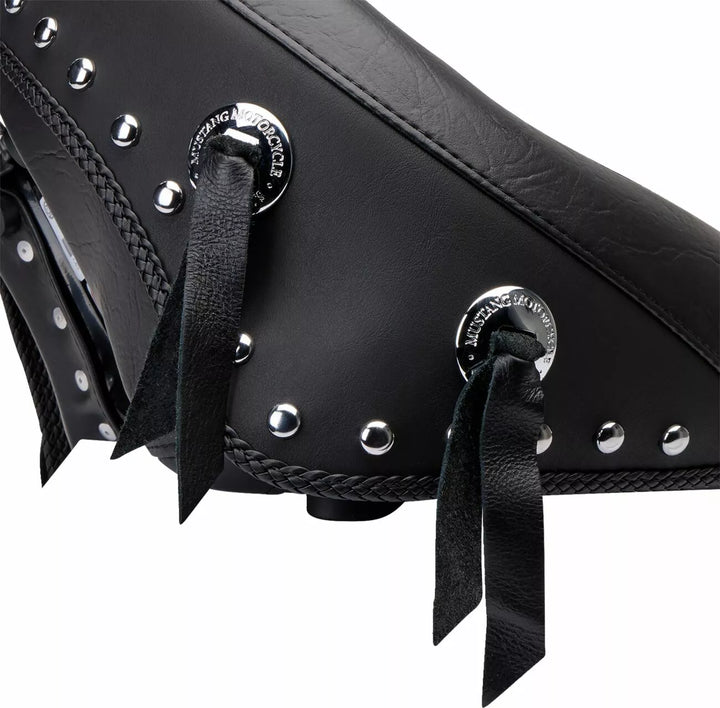 Solo Seat is trimmed with a functional skirt that comes down over the frame and fender for a clean, uninterrupted look, backrest has four height adjustments from 13.5 "to 15.5" Above seat seat bucket, and measures 7 "High by 12" wide, match 12 " Accommodate the Backrest (Sold Separately), Backrest is Easily Removed and Installed Without Tools; Folds forward for easy mounting of bike, Steel Base with Support Wings Holds Up The Full Width на кофата от пяна, направена в САЩ.