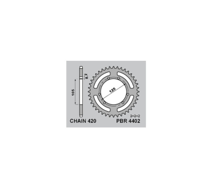 Верижна стъпка: 420.0 Цвят: Черен материал: Стоманени задни зъби: 62.0 Тип отзад: 4402 Задна версия: Стандарт