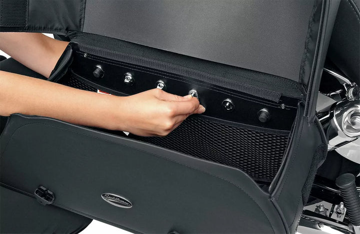 Throw-Over Style Includes A Multi-Adjustable Yoke which Hangs The Bags from the Fender or Seat, and Also Includes a Quick-release Bag Connection to take off bags without disturbing the yoke or seat and a rear-mounted carrry Saddlehyde ™ and a Tough Plastic Frame, All Feature Easy-Open Lid With Bookable Twist-Locks and Supplemental Hook-and-Loop and Rigid Construction, Extra-Strong Plastic Back Works Perfectly with the S4 Quick-DisConnect Препоръчва се системата на Sydlending.