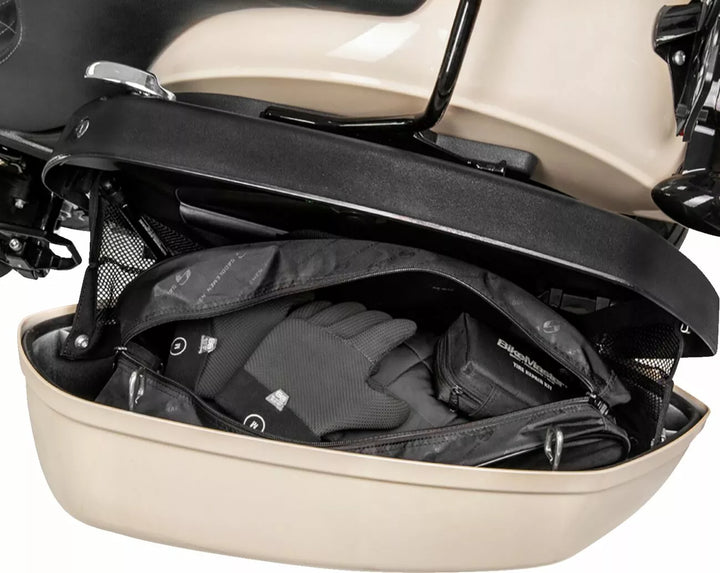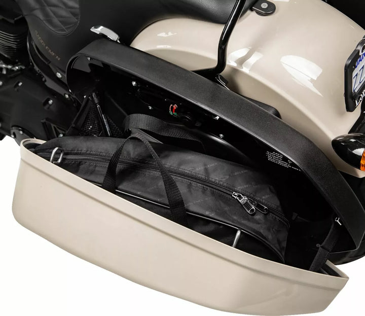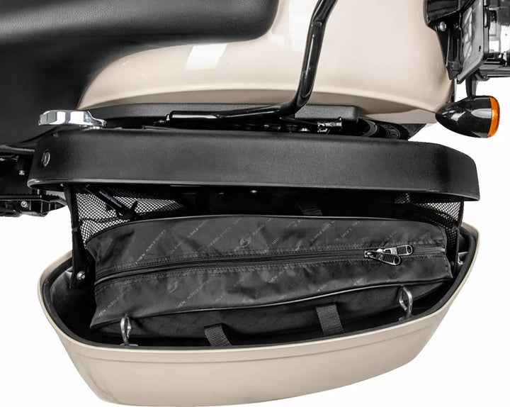 Стандартната мека чанта за облицовка на Saddlebag се контурира, за да се побере спретнато, уникални дизайнерски магазини, които са изравнени, когато са празни и разполагат с отвор с цип с пълна дължина за лесен достъп до предавка, изработен от светлина, но траен PVC, облицована с 150-по-денонощ Хотел, къмпинг или да се разтовари бързо, след като сте вие