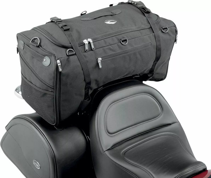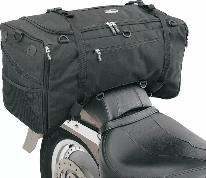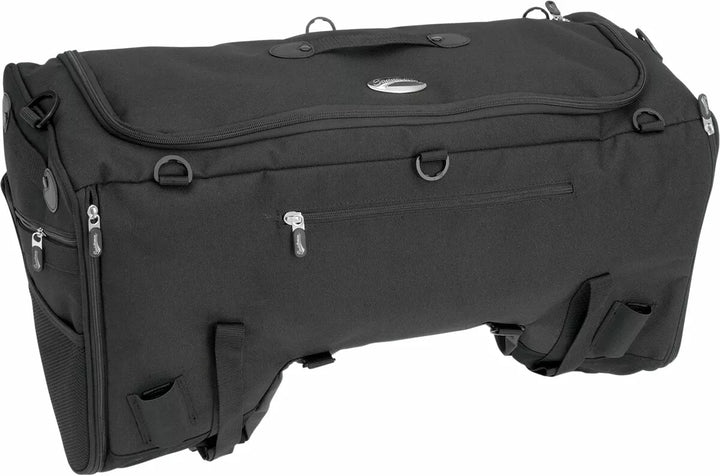 Универсална система за монтаж на бързо разстояние бързо осигурява чантата за рамка, пътнически колчета и др.; Тунел stladdles Повечето стелажи и задни седалки за лесно/изключване на монтажа, меката конструкция на дуфта помага на чантата да съответства на вашето предпочитано място за монтаж, странично разширяване на цип позволява съхранение на по-дълги предмети като палатки, широкия отвор с заключващи се цип, който се отблъсква от мотоциклета, отгоре на каишки с вода, да ви позволи да носите яке или други свободни предмети, да се нуждаят от външни ципове И устойчиви на атмосферни влияния 1200 "размери седлетни 3200 кубически инча, размери на ЕС: 64,77 cm w x 33,02 cm h x 30,48 cm D., капацитет на ЕС: 52.44 L