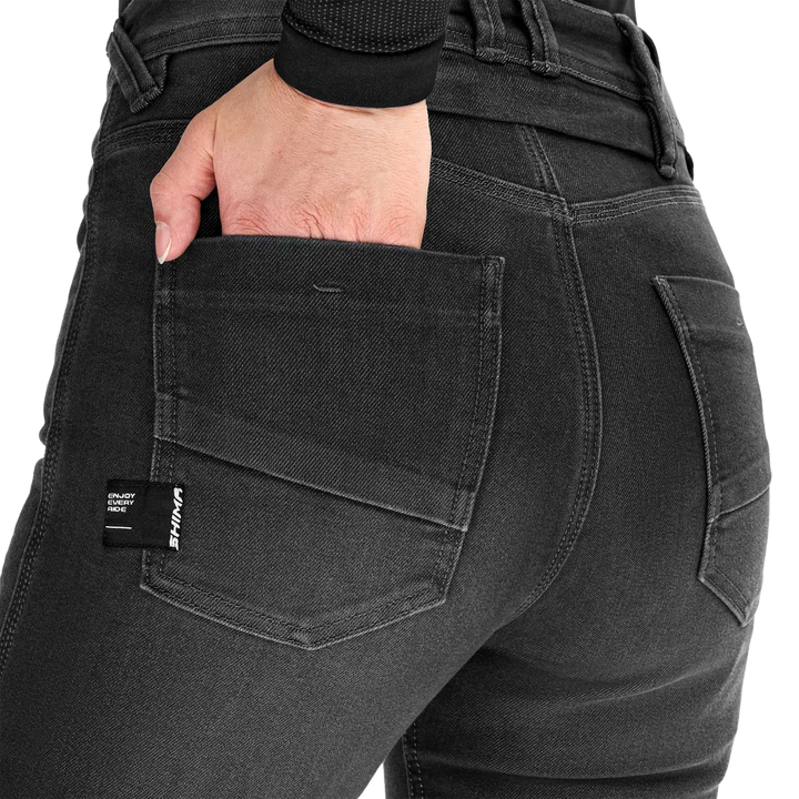 Търсите ли чифт мотоциклетни дънки, които се чувстват като любимите ви дънки, но защита като напълно оборудвана дреха на MC? Дама Шима Ридж Дали най -безопасните женски дънки в гамата на Шима, с AAA сертифициране Според най -високия стандарт за защита.