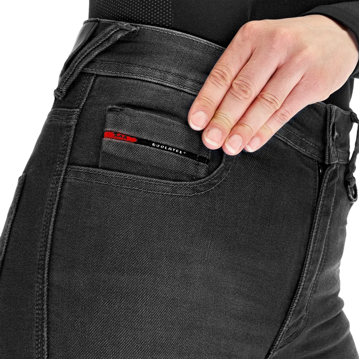 Направен в траен Cordura®-Denim, подсилен с Duolayer Protection ™, както и оборудвани с Ниво 2 GFLEXX-протектори Както за бедрата, така и за коленете (регулируеми с велкро система), получавате дреха, която може да се справи както с ежедневните, така и по -дългите пътувания с най -висок комфорт и безопасност.