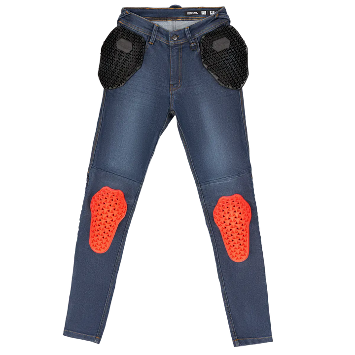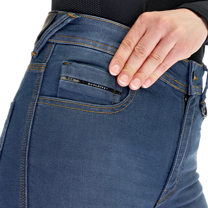 Направен в траен Cordura®-Denim, подсилен с Duolayer Protection ™, както и оборудвани с Ниво 2 GFLEXX-протектори Както за бедрата, така и за коленете (регулируеми с велкро система), получавате дреха, която може да се справи както с ежедневните, така и по -дългите пътувания с най -висок комфорт и безопасност.