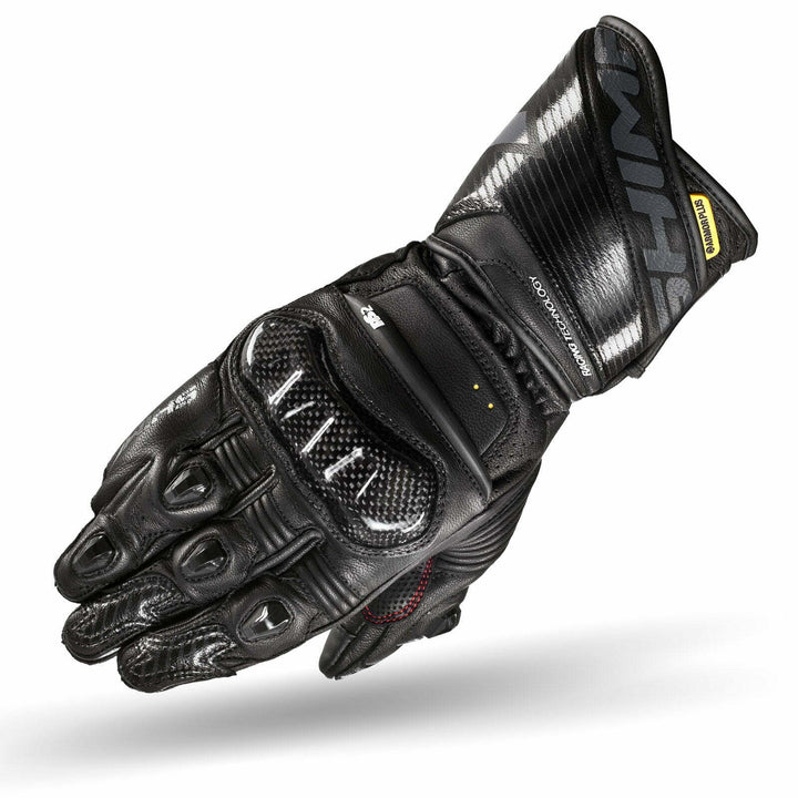 Дълги, спортни мотоциклетни ръкавици Shima RS-2, подсилени от въглеродни влакна.