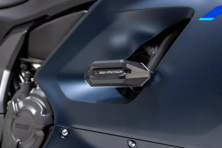 Frame Crash Pads Provide Additional Protection in the Event of A Fall, The Shape, Surface and Materials of the Pads Provide Excellent Sliding Properties to Reduce Damage to the Motorcycle, The Robust Aluminum Mounting Bracket Is Easy to Install, and the Abrasion Prazion Prazion Protection of the Frame, Engine and Fairing, Well-Shaped, Exchangeable (IF Needed) Slider Pad Made of Abrasion-Resistant Polyamide, Large Contact Surface for Best Possible Force Distribution, Optimized Surface of Good Плъзгащи се свойства, алуминиева сплав, лесен монтаж и здрава закрепване на рамката благодарение на специфични за мотора елементи за добавки, включени в доставката, 2 x подложки за катастрофа, инструкции за монтаж, монтажен материал