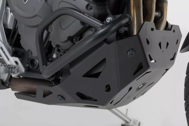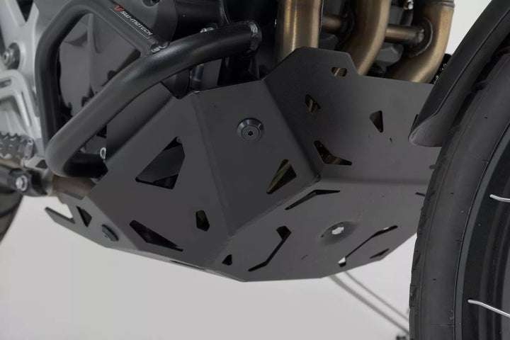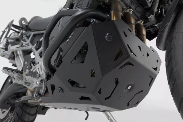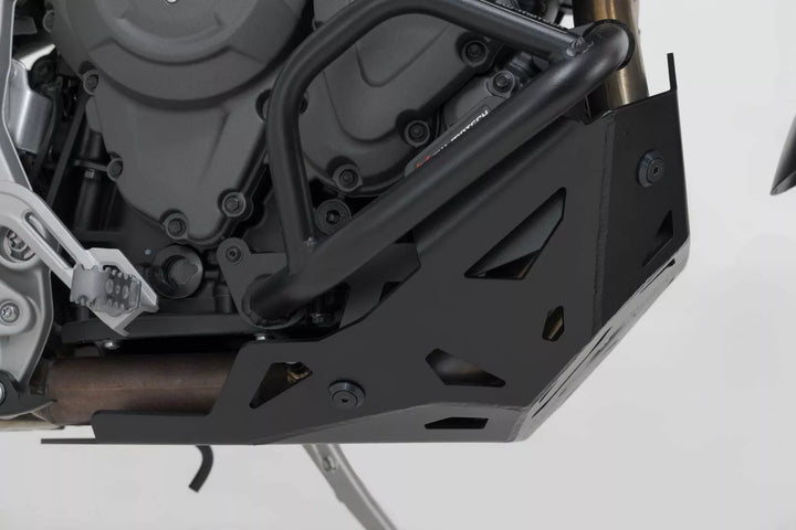 Подчинена защита от скални чипове и сблъсък, надеждна и лесна инсталация на оригинални точки за закрепване, модификации на мотоциклета, не се изискват, специфична за мотора разработка за перфектно прилягане, монтажен материал, включен в деликатен, траен дизайн, изработен от висококачествен алумически предпазител, инструкции за монтаж, монтажен материал