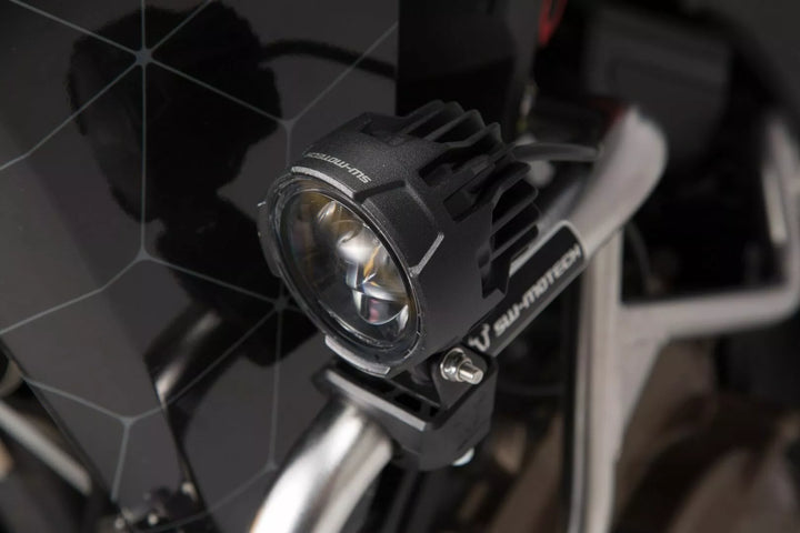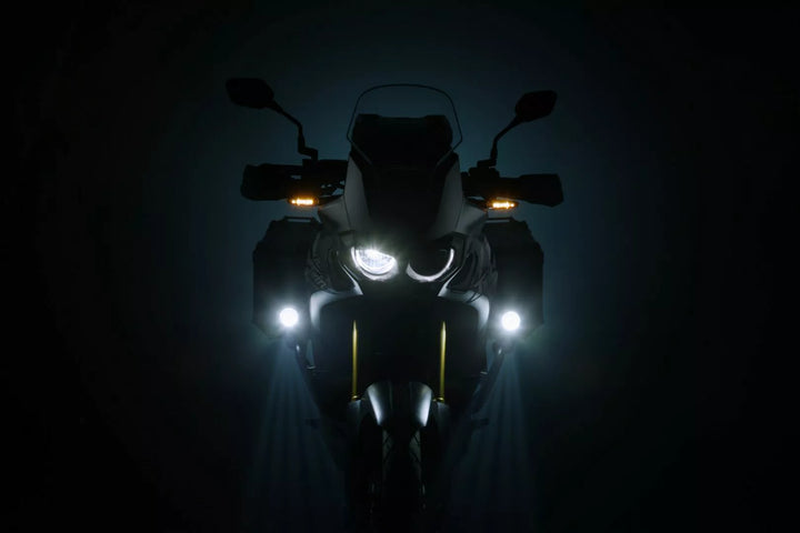 EVO High Beam Lights are ideal for riding long distances in/off road conditions where maximum beam distance is desired to increase visibility and safety, evo lights represented outstanding design, high-quality standards and reliable waters and dust protection (IP69) Trouble-free and maintenance-free operation for years, Trouble-free and maintenance-free operation through wear-free LED, Consuming Significant Less Power, Input Voltage: 12 V DC, LED: 12 W (Per Light), Luminus Flux Flux Outer diameter: 7.1 cm, Water and Dust Proof (IP69), Connects Directly to the Motorcycle, No Changes on the Motorcycle Electric Necessary, Weatherproof, Illuminated Blue Handlebar Switch for Easy Hand 27, 28 mm) or on bike-specific light Mounts for Frame Mounting (Sold Separately), Included: 2 Evo High Beams, Cable Harness with Fuse, Switch, Mounting Material