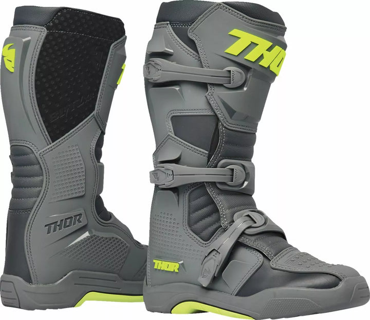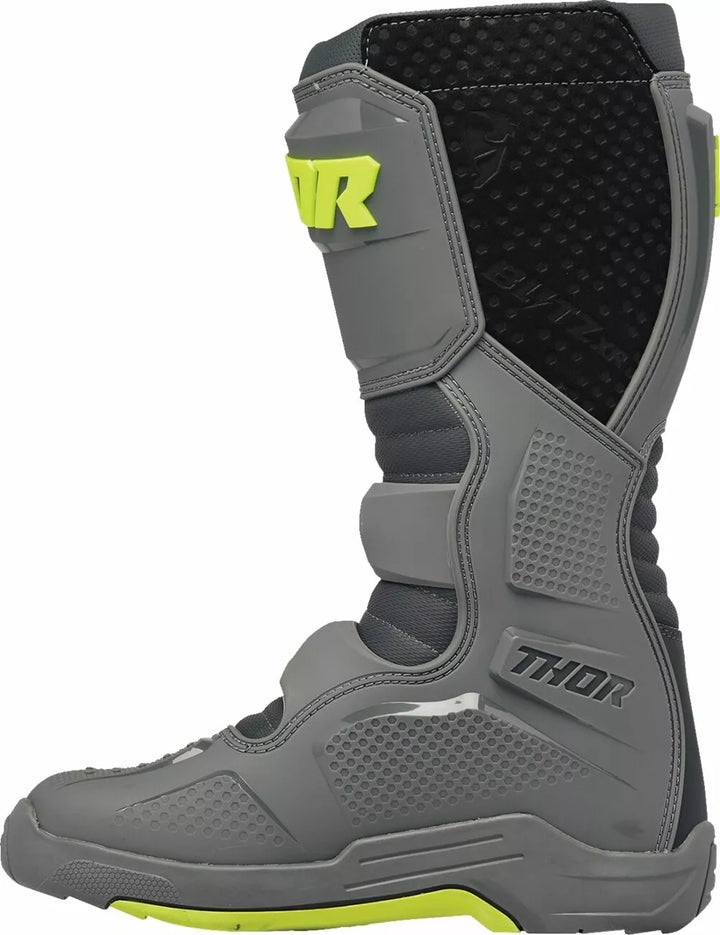 Вътрешността на подплатената мрежа подобрява дишането, инжекционното формована медиална плоча за абразия с интегрирана защита на смяната, напълно синтетични покрития на телета доставя издръжливост и оптимално захващане, подметка с подлежна подлежаща на инжектиране със стоманена сонда