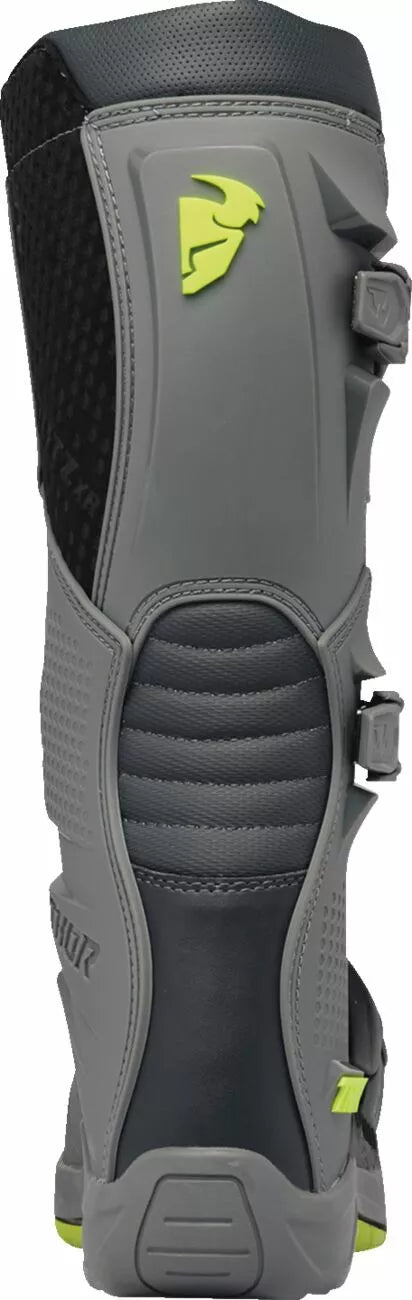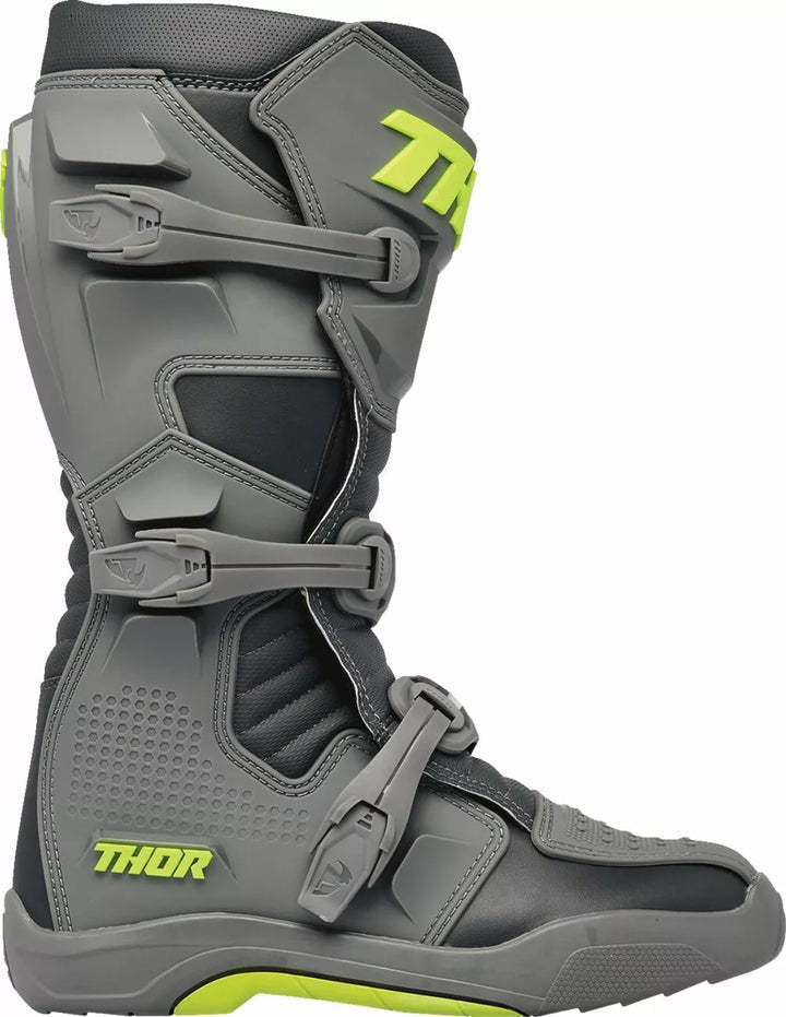 Вътрешността на подплатената мрежа подобрява дишането, инжекционното формована медиална плоча за абразия с интегрирана защита на смяната, напълно синтетични покрития на телета доставя издръжливост и оптимално захващане, подметка с подлежна подлежаща на инжектиране със стоманена сонда